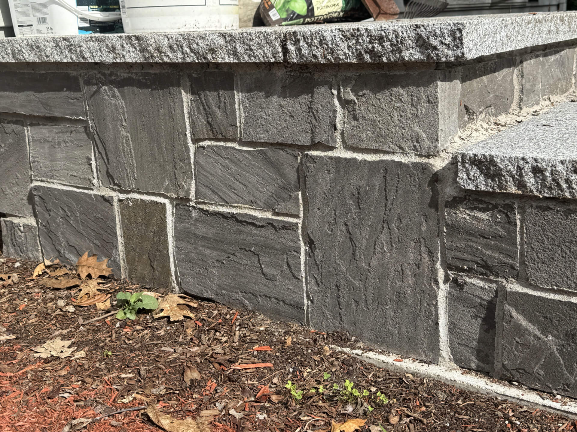 This Ipswich family wanted to replace their old, worn out front steps as part of a whole front of the house project. We removed the old steps prior to digging and installing a proper footing for their front steps. We then built the steps with cinder blocks which were finished with stone veneer and granite treads.